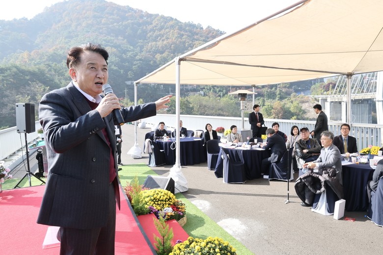특히, 김 지사는 참석자들과 함께 청풍교를 걸으며 브리지 가든 조성 사업 추진에 대한 다양한 의견을 청취하고 향후 발전 방향 및 정책 아이디어를 심도 있게 논의했다.