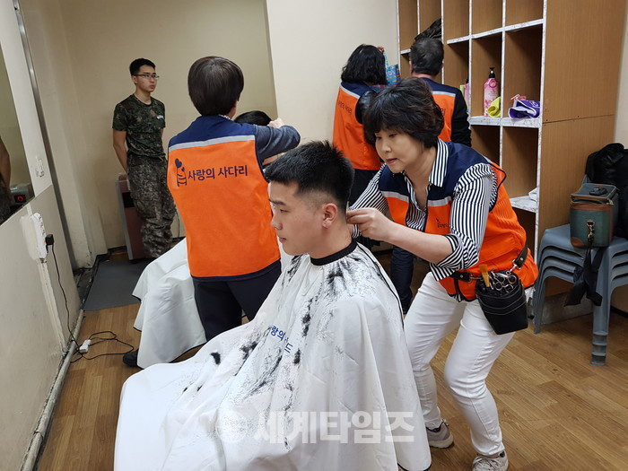 김정자 회장은 “한 달에 한 번씩 나라를 위해서 애쓰고 계시는 군 장병들에게 미용봉사로 감사함을 전하고 있어서 행복과 보람을 느낀다,“고 말했다.