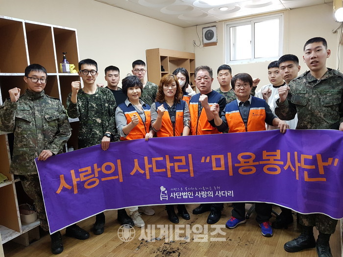 [대전=세계타임즈 이장성 기자] 다양한 봉사를 하고 있는 SNS 6천명 봉사단체 사랑의 사다리 밴드(리더 이정제)는 26일 오전10시부터 육군 제32사단대덕대대(대대장 박종림)에서 군 장병들을 위한 미용봉사로 따뜻한 이웃사랑을 전했다.