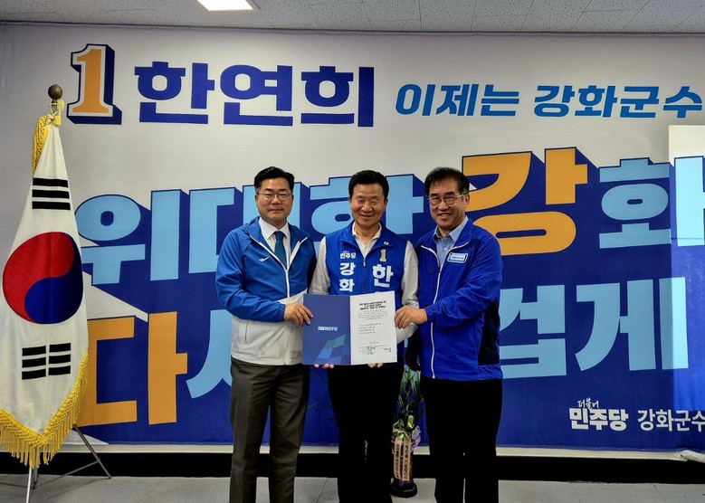 [세계타임즈 = 심귀영 기자] 맹성규 국회 국토교통위원장과 박찬대 더불어민주당 원내대표, 한연희 더불어민주당 강화군수 후보가 3일(목) 강화지역 교통인프라 확충을 위한 정책 협약식을 진행했다. 이번 재보궐 선거를 통해 윤석열 정부의 실정을 심판하고, 협약을 통해 교통취약지역인 강화지역의 교통 인프라 확충을 함께 추진한다는 취지를 담고 있다.