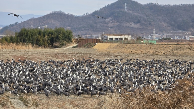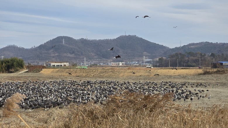 [순천시 세계타임즈=우덕현 기자] 순천시는 지난 8일 순천만 갈대숲 탐방로 인근 농경지 복원지에 흑두루미 2,200마리가 들어와 먹이활동을 하고 있다고 밝혔다.