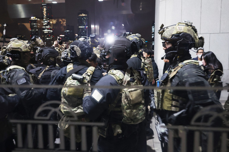 윤석열 대통령이 비상계엄을 선포한 4일 서울 영등포구 여의도 국회 본관으로 계엄군이 진입 준비를 하고 있다. 2024.12.4