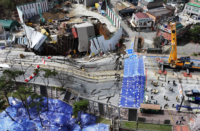 임 과장은 사고현장에 위험요소가 워낙 많아 붕괴한 지하터널 하부로의 진입은 불가능하다고 했다. "현장 자체가 위험요소로 가득 차서 (하부로 진입하는) 구조 작업이 어렵다"며 "(하부 진입을 위해) 주변 위험물을 제거하는 상황"이라며 안전을 확보하는 것이 우선이라는 입장을 전했다.지반 침하가 계속해서 일어나는지에 관해서는 "어제의 경우 강수로 인해 크랙이 심하게 상부 쪽에 생긴 것을 확인했다"며 "전문가 의견으로는 계속 침하가 있는데, 관측기를 가지고 지속해서 보는 중"이라고 설명했다.이번 사고는 지난 11일 오후 3시 13분께 광명시 일직동 신안산선 복선전철 제5-2공구에서 포스코이앤씨가 시공 중인 지하터널 공사 현장과 상부 도로가 무너지면서 발생했다.이 사고로 근로자 19명 중 2명이 각각 고립·실종됐는데, 실종됐던 굴착기 기사 20대 A씨는 13시간여 만에 구조됐다.