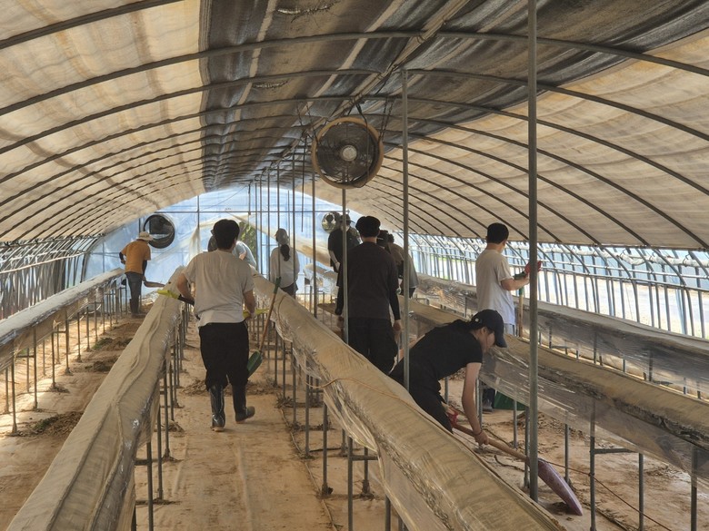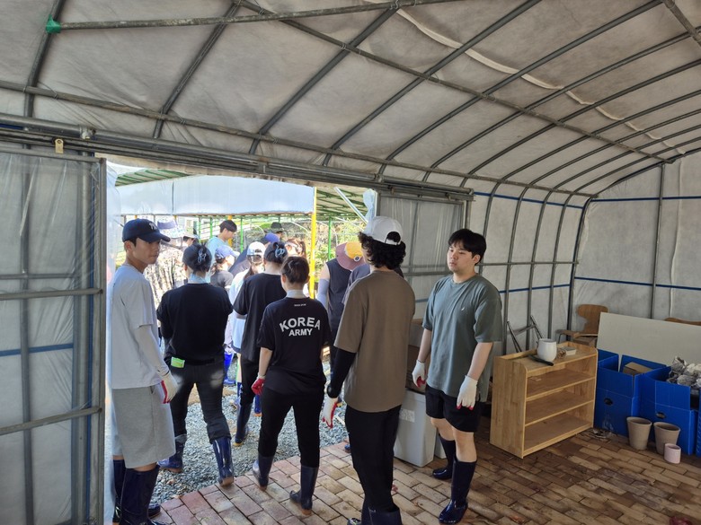 이날 당진시 순성면에 위치한 딸기농장을 찾은 대학생들은 집중호우로 훼손된 하우스 시설에서 토사 정리 및 배수로를 정비하며 구슬땀을 흘렸다.