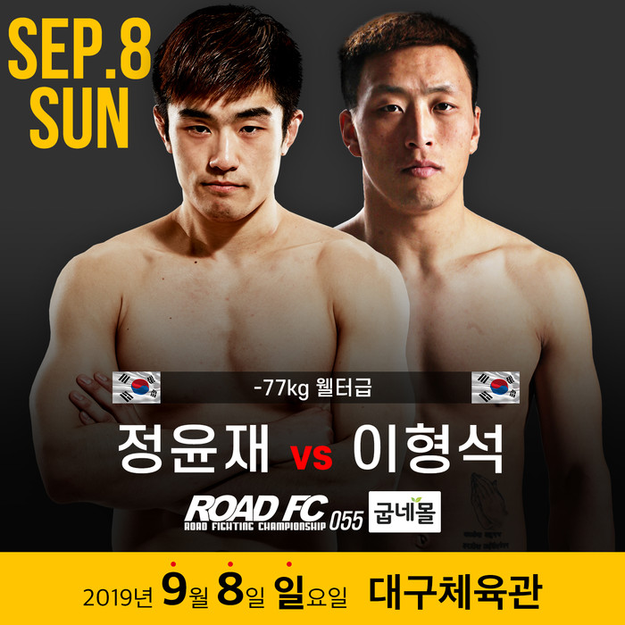 ROAD FC는 추가로 굽네몰 ROAD FC 055 정윤재(29, 싸비MMA)와 이형석(32, 팀혼)의 대진과 굽네몰 ROAD FC YOUNG GUNS 44 진익태(27, 구미 쎈짐)와 김창희(35, 긱짐) 대진을 확정, 발표하게 됐다.