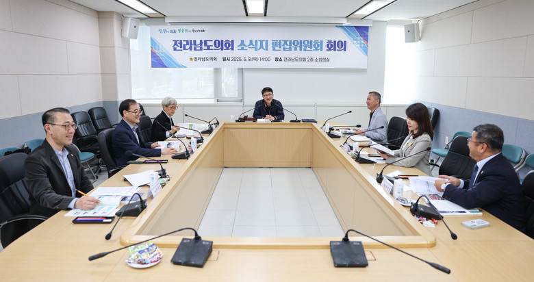 [전남 세계타임즈=우덕현 기자] 전라남도의회(김태균 의장, 광양4)는 지난 5월 8일 도의회 소회의실에서 전라남도의회 소식지 발간을 위한 편집위원회 회의를 개최했다.