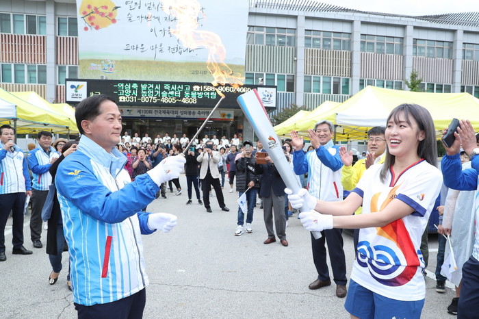 [세계타임즈 김인수기자] 고양시는 지난 9월 22일(일) 오후 2시 20분 고양시청에서 ‘제100회 전국체육대회 및 제39회 전국장애인체전’ 고양시 구간 성화봉송행사를 개최했다.