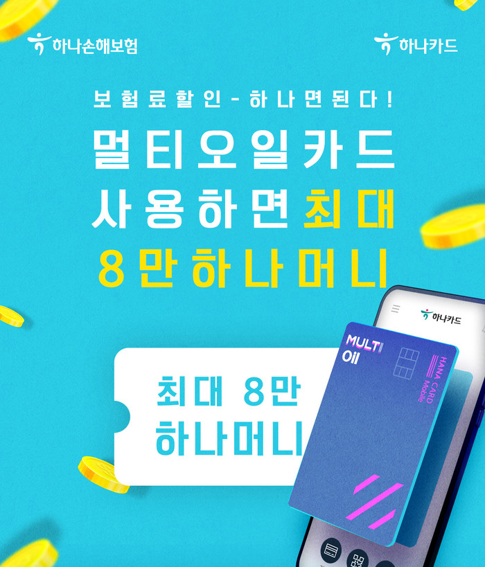 [세계타임즈 이혜원 기자]하나손해보험은 하나카드와 함께 최대 8만 하나머니를 받을 수 있는 ‘하나카드 멀티오일카드 프로모션’을 3월 22일부터 4월 30일까지 진행한다고 밝혔다.