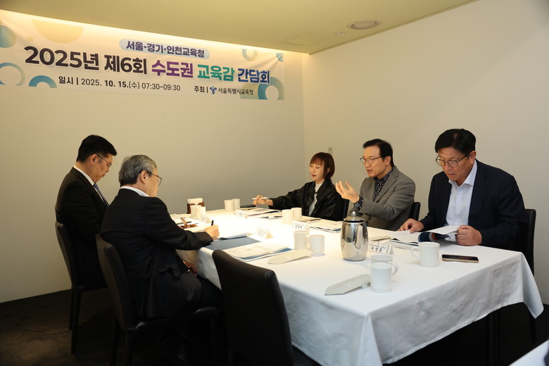 [서울 세계타임즈=이장성 기자] 서울특별시교육청 정근식 교육감은 경기도교육청 임태희 교육감,인천광역시교육청 도성훈 교육감과 함께 10월 15일(수) 수도권교육감 간담회를 열고, 21대 정부의 국정과제 실현을 위한 교육제도 개선 방향과 학생의 학습권·인권 보장 및 안전확보를 위한 정책 대응 방안을 논의하였다.
