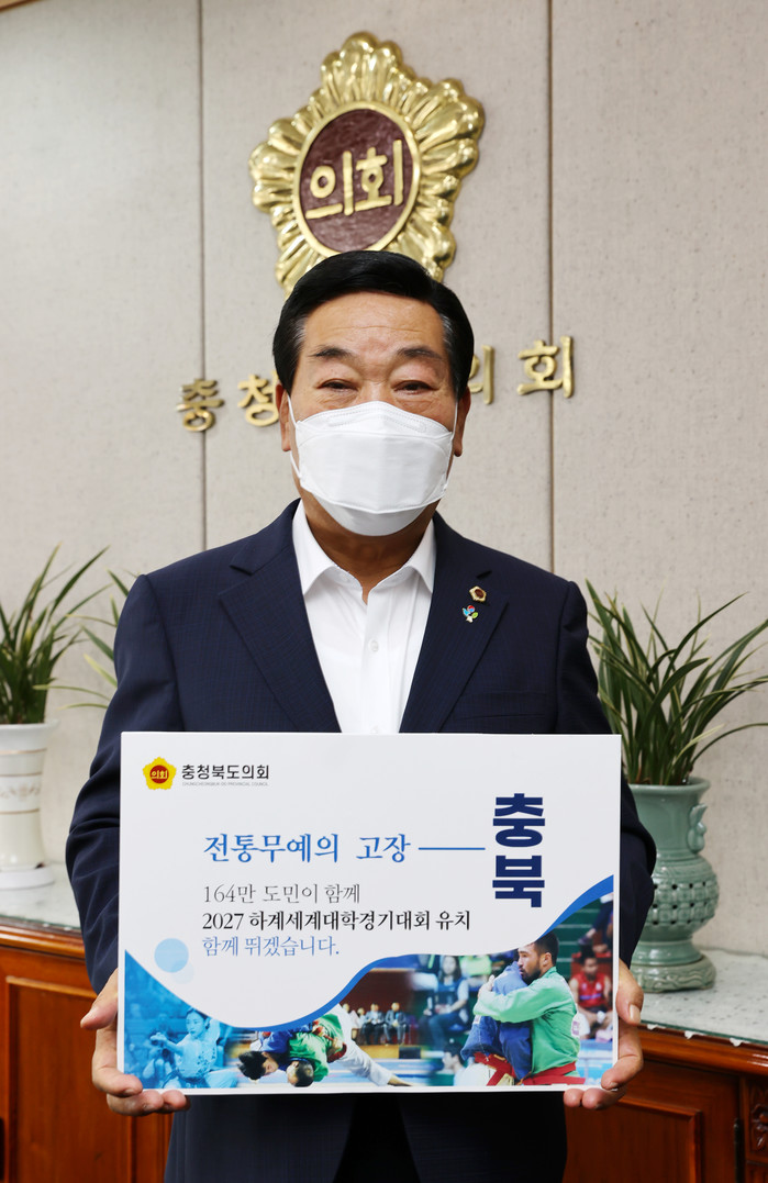 박문희 의장은 ‘2027하계세계대학경기대회 유치 함께 뛰겠습니다’라고 적힌 팻말을 들고 찍은 사진을 페이스북에 게시하며 응원의 메시지를 전했다.