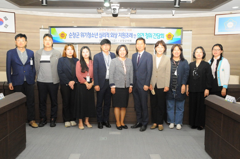 이번 간담회를 주관한 김정숙 의원은“이번 조례 제정을 통해 순창군 관내 아동·청소년이 고통없는 건강한 성장을 통해 행복한 삶을 누릴 수 있기를 바란다”고 밝혔다.