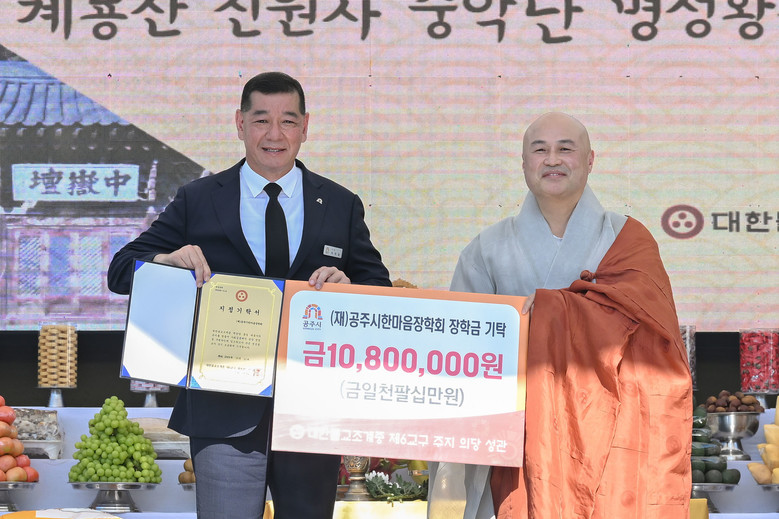 이날 장학금 기탁식은 신원사에서 봉행된 ‘제14회 명성황후 추모대제’와 함께 진행됐으며, 불교계 전통문화의 계승과 더불어 지역사회 발전에 기여하고자 하는 신원사의 사회공헌 의지를 보여준 자리였다.