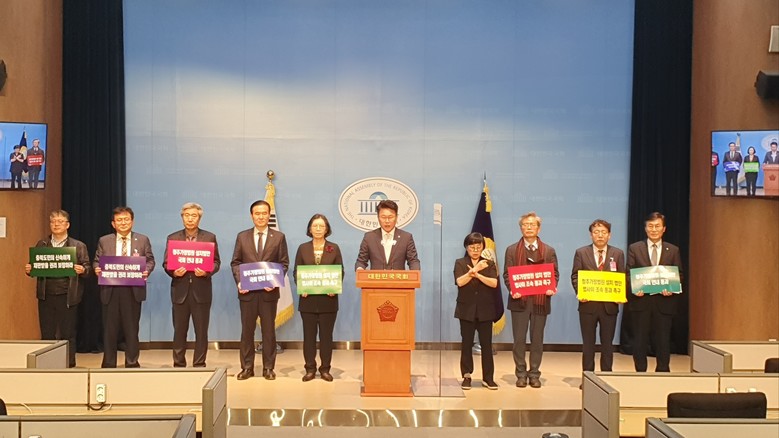 기자회견 참석자들은 회견을 마치고, 법제사법위원회 법안1소위원장인 기동민 국회의원에게 낭독한 내용이 담긴 기자회견문을 전달했다.