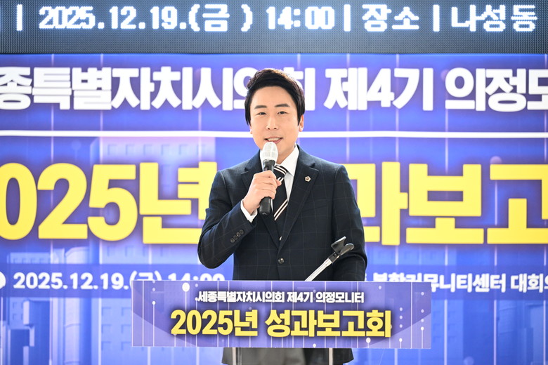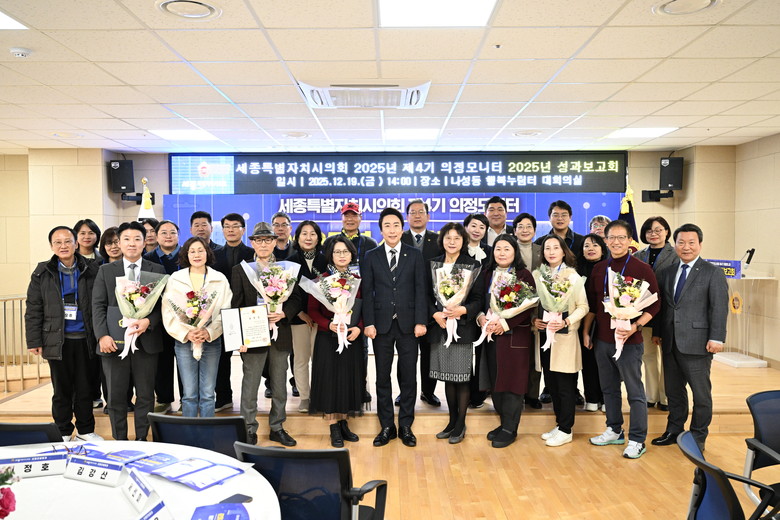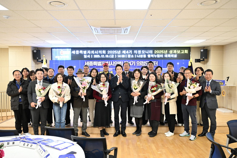 [세종 세계타임즈=이채봉 기자] 세종특별자치시의회(의장 임채성)는 19일, 나성동 복합커뮤니티센터에서 ‘2025년 제4기 의정모니터 성과보고회’를 개최하고, 한 해 동안의 의정모니터 활동 성과를 공유했다.