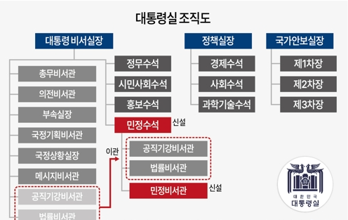 산하에 민정·공직기강·법률비서관사정담당 반부패비서관은 제외