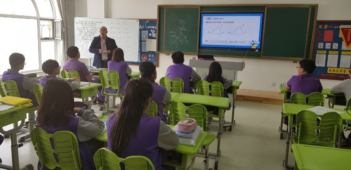 | ▲애화외국어학교 수업 장면. 한국 학생들과 관계자들이 수업을 참관했다. |