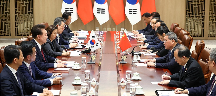 [세계타임즈 = 이채봉 기자] 윤 대통령은 리창(李强) 중국 국무원 총리에게 한중 양국은 우리의 양자 관계뿐만이 아니라 국제사회의 평화와 번영을 위해 긴밀하게 협력해야 한다고 말했다.윤 대통령은 대통령실에서 제9차 한일중 정상회의 참석차 방한한 리 총리와 회담을 열어 이같이 밝혔다.윤 대통령은 최근 양국 간에 다양한 분야에서 장관급 대화가 재개되고 지방 정부 간 교류도 활성화되고 있다며 양국이 앞으로도 계속 교류와 협력을 강화하고, 서로 존중하며 공동이익을 추구해나가길 희망한다고 말했다.한편으로 국제사회에서 한중 양국이 직면한 공동의 도전과제가 엄중한 것도 사실이라며 우크라이나 전쟁, 이스라엘 하마스 사태가 지속되고 있고 이로 인해 세계 경제의 불확실성도 가중되고 있다고 했다.지난 30여년간 한중 양국이 여러 난관을 함께 극복하며 서로의 발전과 성장에 기여해 왔듯이 오늘날의 글로벌 복합위기 속에서도 양국 간 협력을 계속 강화해 나가기를 희망한다고 덧붙였다.리 총리는 중한 양국은 항상 상호 존중을 견지하고, 평등한 대화와 진심 어린 의사소통을 통해 끊임없이 우호와 상호신뢰를 심화시켜갔다며 중국 측은 한국 측과 함께 노력해 서로에게 믿음직한 좋은 이웃, 또한 서로가 성공할 수 있도록 지원하는 파트너가 되고 싶다고 화답했다.리 총리는 중한 양국 수교 30여년 역사를 돌이켜보면 양국 관계는 신속한 발전을 이룩했고, 특히 경제, 무역 분야에서 풍부한 성과를 거두어 양국 인민에게 커다란 혜택을 가져다주었다고 평가했다.우리는 개방과 포용을 견지하며 공감대를 모으고 차이점을 해소해 나가면서 좋은 협력 분위기를 유지해 왔으며, 공동의 발전과 번영을 촉진해 왔다며 이 모든 소중한 경험을 함께 소중히 여기고 오래도록 견지해 나가기를 바란다고 말했다.올해는 중한일 협력체 출범 25주년이 되는 해로 중국 측은 한국이 의장국으로서 제9차 중한일 정상회의를 개최하는 것을 지지한다며 이번 회의에서 적극적인 성과를 거둬 3국 간에 협력과 이 지역의 발전을 위하여 응당한 기여를 하기 바란다고 덧붙였다.윤 대통령은 지난해 9월 인도네시아 자카르타에서 열린 아세안(ASEAN·동남아시아국가연합)+3(한일중) 정상회의에서도 리 총리와 회담한 바 있다.중국 총리의 방한은 지난 2015년 리커창 총리의 방한 이후 9년 만이다.한중 양자회담에는 우리 측에서 최상목 경제부총리, 조태열 외교부 장관, 안덕근 산업통상자원부 장관, 정재호 주중대사, 장호진 국가안보실장, 김태효 국가안보실 1차장, 박춘섭 경제수석 등이 배석했다.중국 측에서는 진 좡룽 공업정보화부 부장, 쑨 예리 문화여유부 부장, 싱 하이밍 주한중국대사, 류 쑤서 국가발전개혁위원회 부주임, 우 정룽 국무위원 겸 국무원 비서장, 왕 원타오 상무부 부장, 마 자오쉬 외교부 상무부부장, 쑨 웨이둥 외교부 부부장, 캉 쉬핑 총리판공실 주임 등이 자리했다.