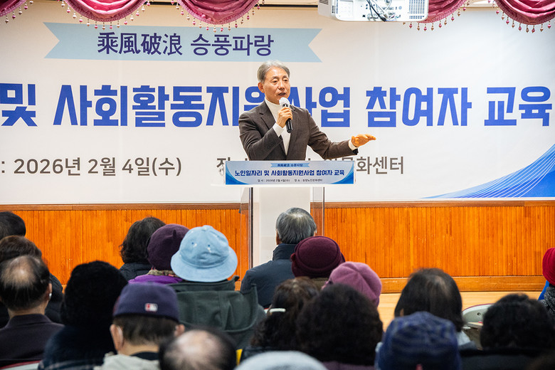 이번 교육은 야외에서 근무하는 참여자 150여 명을 대상으로 진행됐으며, 혹한기 안전 수칙과 겨울철 주요 질환 예방법 등을 중심으로 어르신들이 현장에서 바로 활용할 수 있는 실질적인 내용으로 구성됐다.