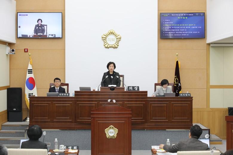 올해 처음으로 열리는 이번 임시회에서는 예산·결산 특별위원회 구성 및 2022회계연도 세입·세출 결산검사 위원 선임과 조례안 등 각종 안건을 심사하고, 2022년도 행정사무감사 지적사항 처리결과 보고 및 질의답변 후 2023년도 주요업무 추진계획을 청취한다.