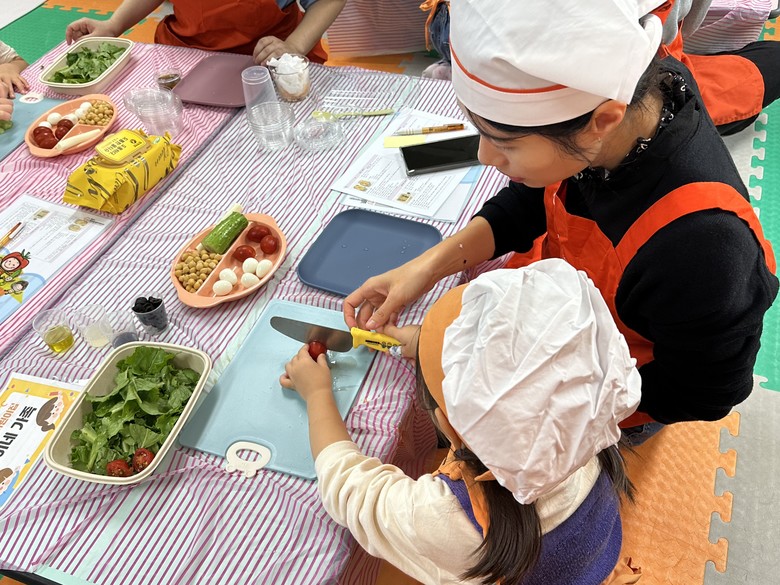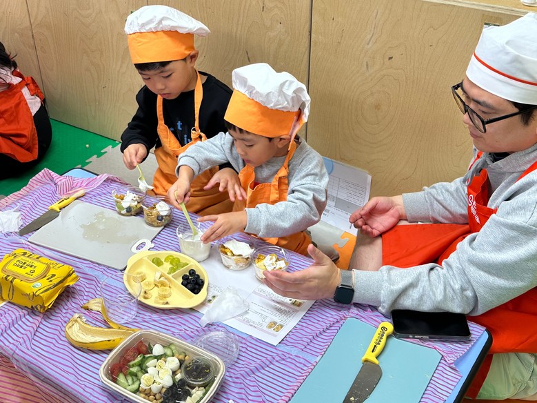 어린이 참가자들은 떠먹는 밥피자, 병아리콩 콥샐러드, 과일 요거트 파르페를 직접 만들면서 건강한 식습관을 배웠고, 함께 참여한 부모를 대상으로는 손 오염도 측정과 편식 예방 교육을 진행했다.