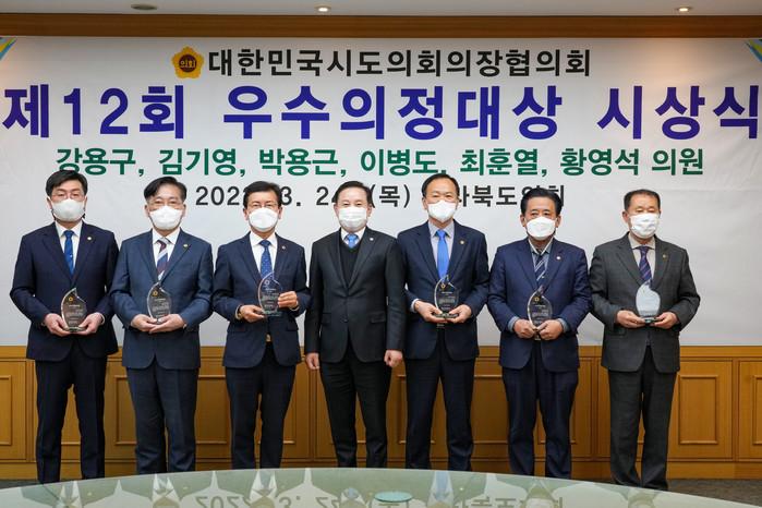 우수의정대상은 대한민국시도의회의장협의회가 매년 지방자치 발전 및 주민들의 삶의 질 향상에 기여하고 의정활동이 돋보이는 광역의회 의원을 선정하여 수여하는 상으로, 코로나19로 인해 상패는 24일 전라북도의회 송지용 의장이 전달했다.