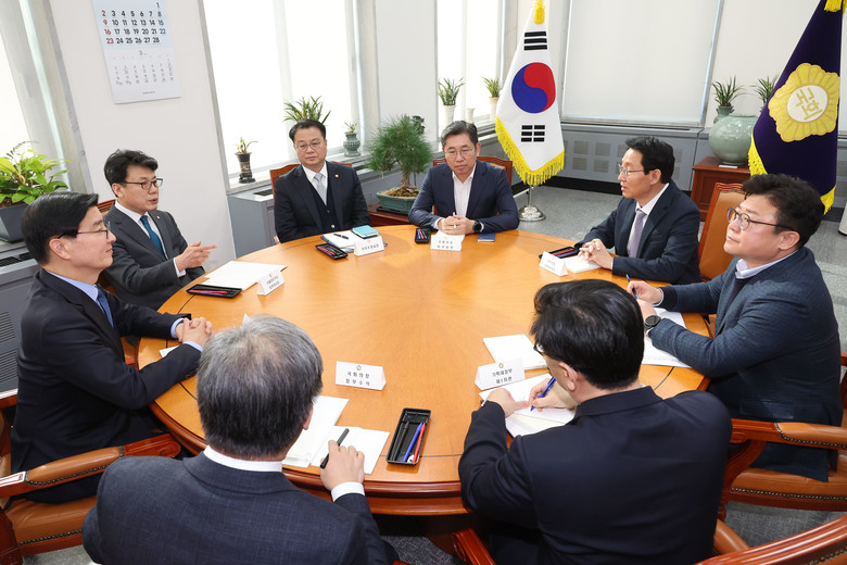 4일 오전 서울 여의도 국회에서 국민의힘 김상훈 정책위의장과 더불어민주당 진성준 정책위의장, 방기선 국무조정실장, 조오섭 국회의장 비서실장 등이 참석한 가운데 국정협의체 실무협의가 열리고 있다. 2025.2.4