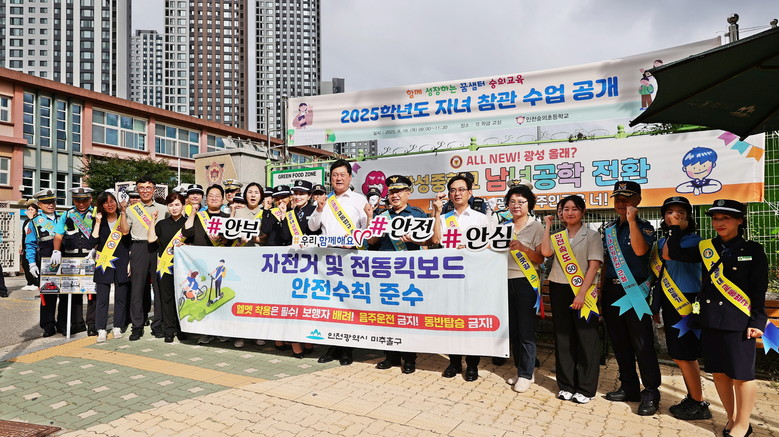 캠페인은 미추홀구를 비롯해 미추홀경찰서, 인천시, 녹색어머니회, 모범운전자회, 자원봉사센터, 숭의초등학교 관계자 등 100여 명이 함께 협력해 진행됐다.