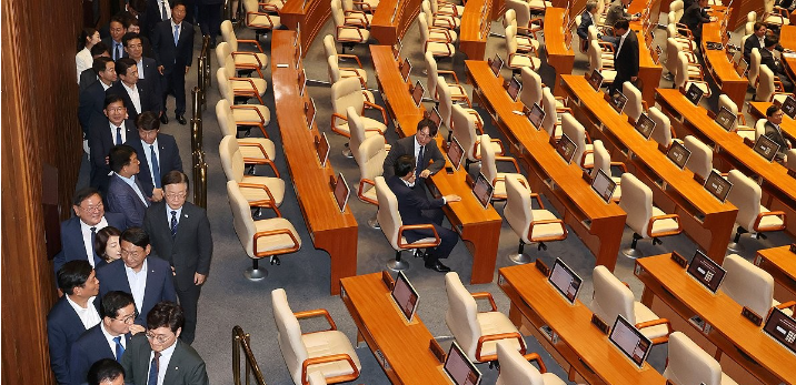 장동혁 원내수석대변인은 논평에서 민주당의 목표는 이 대표의 검찰 리스크 방탄이라며 국회를 이재명의, 이재명에 의한, 이재명을 위한 입법 폭주의 장으로 만들기 위해 여당을 한낱 들러리로 취급한다고 비판했다.집권 여당으로서 국회를 비우는 것도 상당한 정치적 부담일 수밖에 없다.의사일정을 전면 보이콧하거나 장외로 나갈 경우, 국회에서 집권당의 모습이 사라지는 역설적 상황에 따른 여론의 역풍을 맞을 수도 있다.당 특위를 통한 시행령 정치도 여당이 민생에 손을 놓고 있다는 비판을 의식한 임시방편일 뿐, 상임위처럼 입법 권한이 없다는 한계에 부닥친다.의총에서도 일부 의원들은 여당이 상임위에 참석해 야당과 싸워야 한다고 주장했다. 거부권 행사와 시행령 개정은 정부의 영역이기 때문에 여당이 국회에서 할 수 있는 일은 해야 한다는 것이다.여당 지도부로선 소수당의 무력감 속에서 딜레마에 빠진 상황이다. 지도부는 연일 강력히 대응하겠다고 공언하고 있지만, 국회 의사일정 전면 보이콧 여부는 결정하지 못했다.