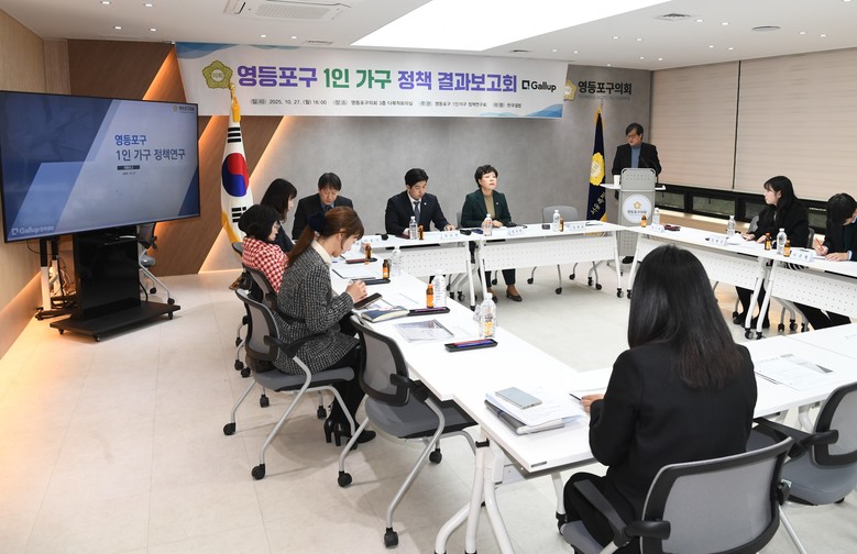 [영등포구 세계타임즈=이장성 기자] 영등포구의회 의원연구단체 '영등포구 1인 가구 정책연구회'가 27일 오후 4시 영등포구의회 다목적회의실에서 최종보고회를 개최하고 올해 연구 활동을 마무리했다.