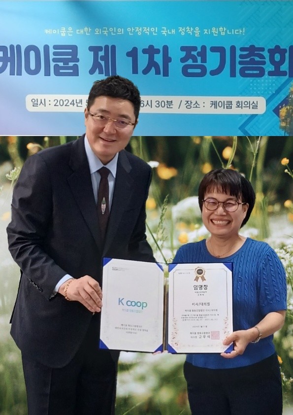 [세계타임즈]최성룡기자 = 케이쿱(대한외국인협동조합 / 이사장 고우석)은 지난 5월 31일 케이쿱 회의실에서 첫 번째 정기총회를 개최하고 임명장을 수여했다.
