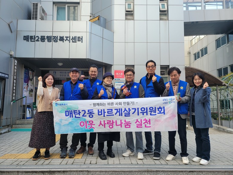 박형록 매탄2동 바르게살기운동위원회 위원장은 “겨울철은 특히 취약계층에게 어려움이 가중되는 계절이다. 이번 지원 사업으로 대상자들이 올 겨울을 밝고 따뜻하게 지낼 수 있었으면 좋겠다.”며, “앞으로도 주민들의 삶을 개선하기 위한 다양한 사업을 이어가겠다.”고 말했다.