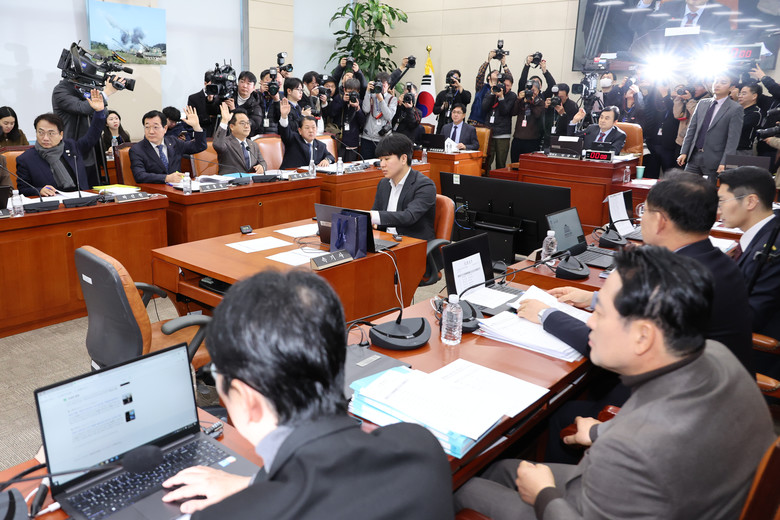 4일 국회에서 열린 '윤석열 정부의 비상계엄 선포를 통한 내란 혐의 진상규명 국정조사 특별위원회' 청문회에서 야당 의원들이 윤석열 대통령 등 불출석 증인들에 대한 동행명령장 발부에 대해 찬성하고 있다. 2025.2.4