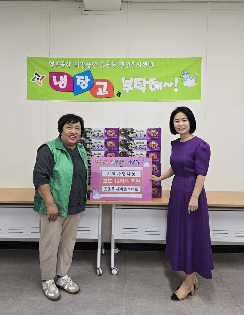 또한, 부녀회는 포도 12박스를 추가로 기탁해, ‘찾아가는 나눔냉장고’ 대상 가구에 밑반찬과 함께 전달했다.