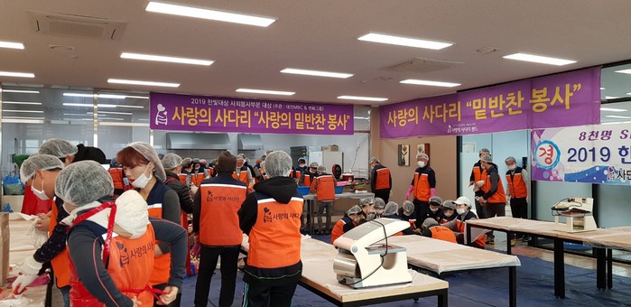 [대전=세계타임즈 이채봉 기자] 대전시 SNS 8천명 봉사단체 사랑의 사다리 밴드(리더 이정제)는 11일 오전9시,유성구 탑립동 코리아종합안전(대표 송철영)에서 대전시 소외계층 300가정을 위한 밑반찬 봉사로 우리 사회의 따뜻한 사랑을 전달하였다.