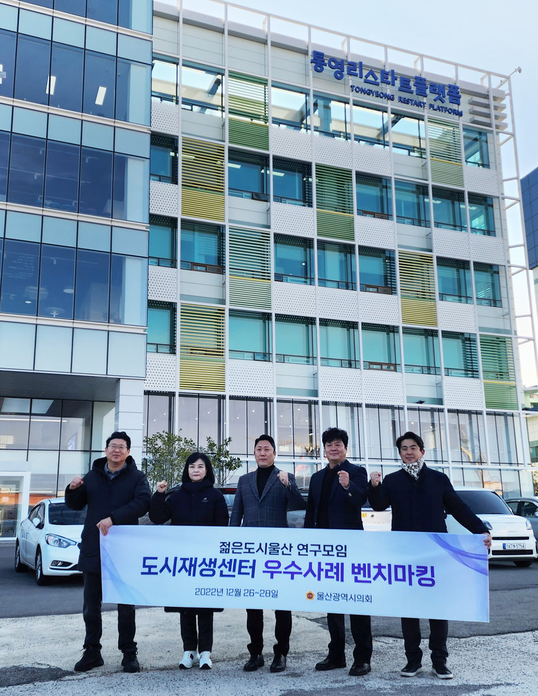 [울산 세계타임즈=이호근 기자] 울산광역시의회 의원연구단체 ‘젊은도시울산 연구모임(김종섭 의원(회장), 권순용 의원, 천미경 의원, 김종훈 의원, 공진혁 의원)은 도시재생센터 우수정책을 벤치마킹하기 위해 26일 “통영 리스타트 플랫폼”을 방문했다.