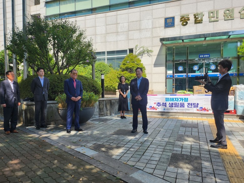 이번 생필품 전달은 마산지역 근거리에 있는 피해자 5세대는 행사장에서 마산지청장, 이사장은 피해자 대표에게 전달하고, 10가정에 대해서는 범피위원이 직접 피해자 가정을 방문하여 추석 생필품을 전달하였다.