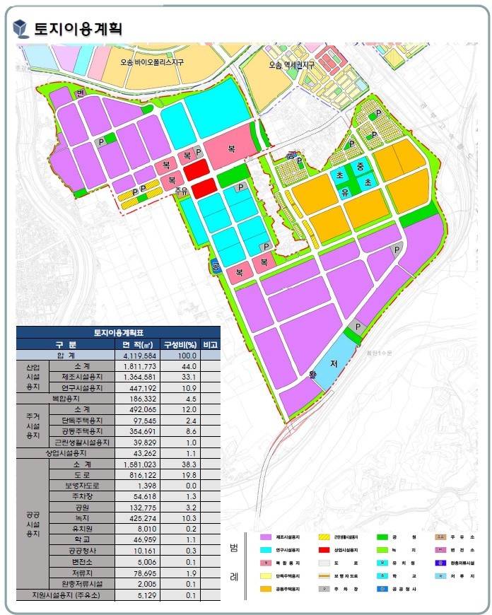 | ▲ 오송 제3생명과학 국가산업단지 토지이용계획 |