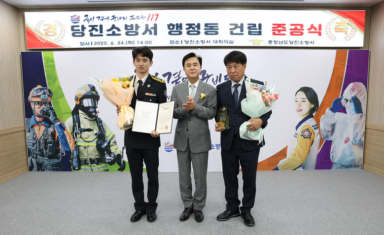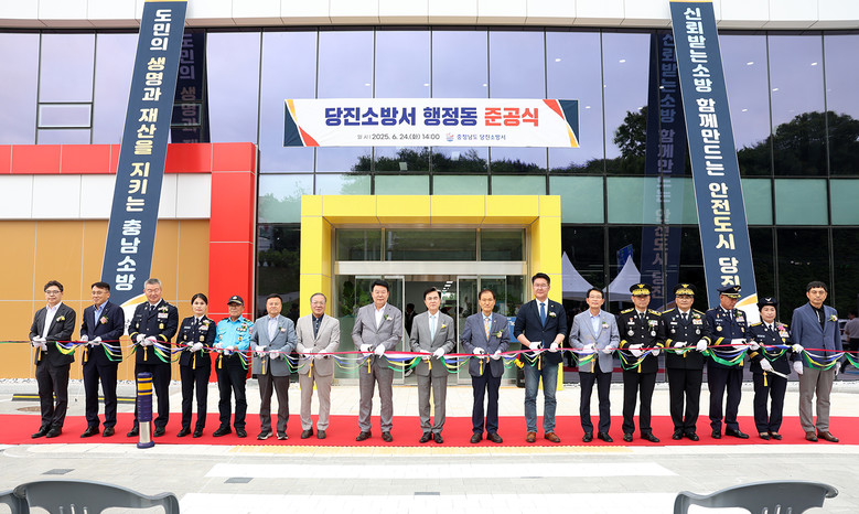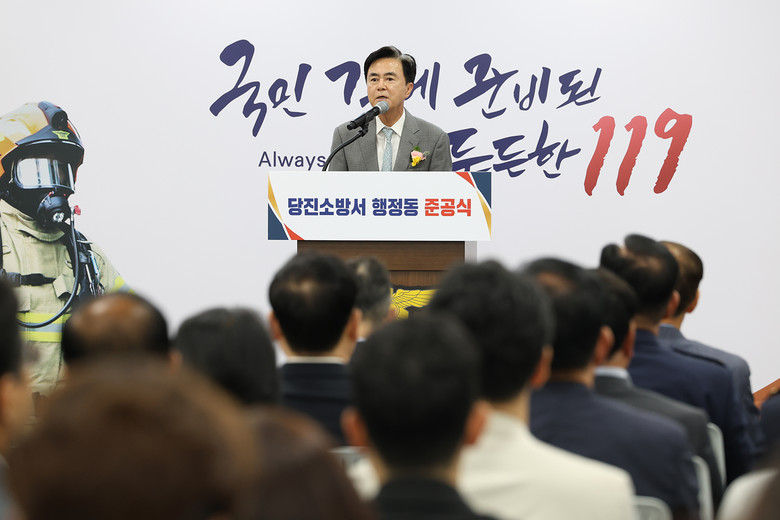 김태흠 충남도지사는 24일 당진시 역천로에서 열린 ‘당진소방서 행정동 준공식’에 참석해 완공을 축하하고 소방 관계자들을 격려했다.