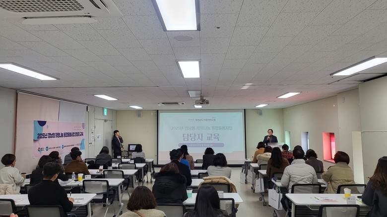 - 시군 담당자 역량강화 및 네트워크 구축 기회 마련 [세계타임즈=경남 최성룡 기자] 경상남도(도지사 박완수)와 경상남도 사회서비스원(원장 조철현)는 18일 경남사회적경제혁신타운에서 ‘경남형 통합돌봄사업’의 성공적인 안착을 위한 시군 담당자 교육을 실시했다고 밝혔다.