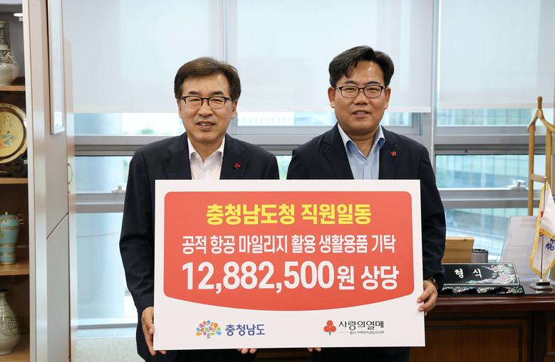 도는 24일 도청 정무부지사실에서 전형식 정무부지사와 유병설 충남사회복지공동모금회 사무처장 등이 참석한 가운데, ‘공적 항공마일리지 활용 물품 전달식’을 개최했다.