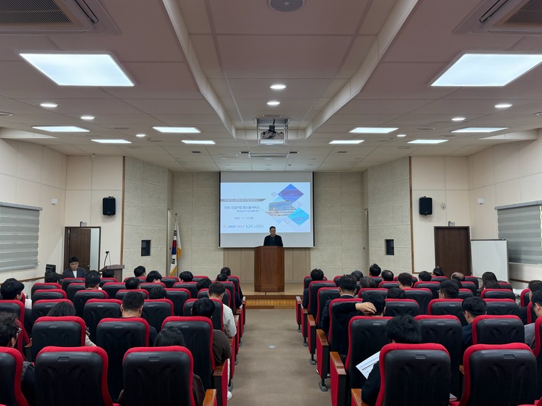 충청남도건설본부는 13일 2층 대회의실에서 LX와 건설본부 직원 및 15개 시군 도로와 하천 관련 업무 담당자 등 100여 명이 참석한 가운데 ‘SOC 건설사업 원스톱서비스 설명회’를 개최했다.