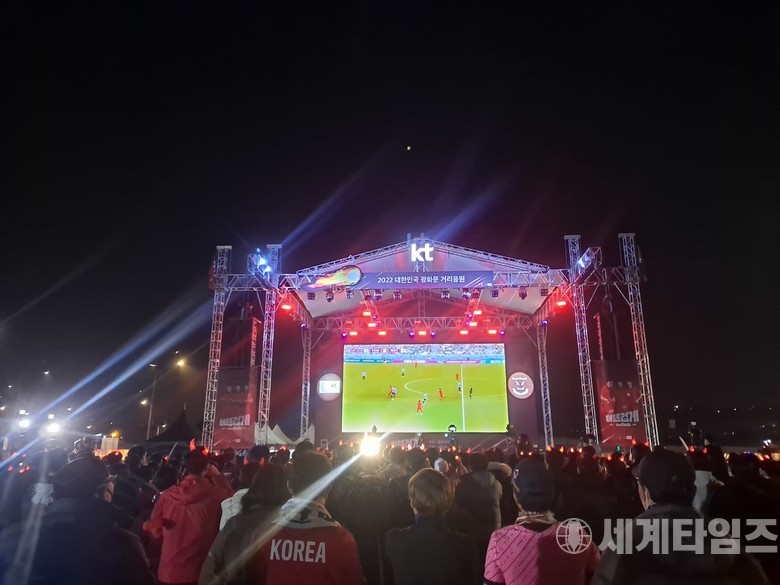 [세계타임즈=방춘재 기자] 한국 축구대표팀의 2022년 카타르월드컵 첫 경기에서 서울 광화문광장 등에서 거리 응원이 열렸다.