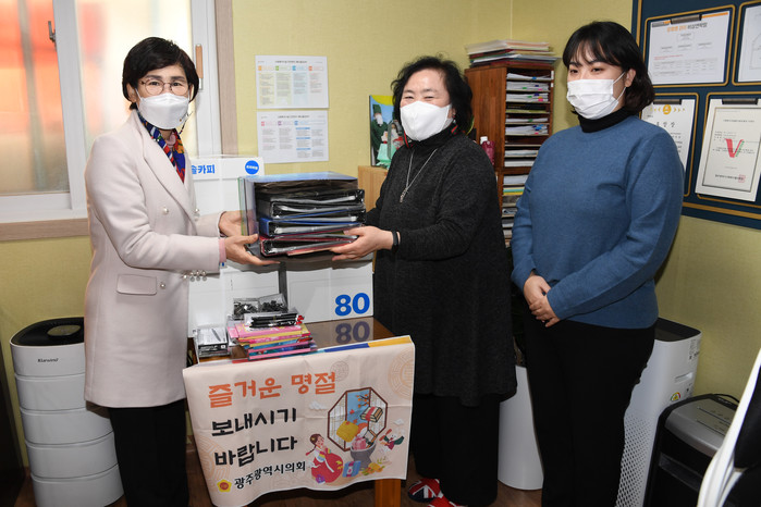 [광주=세계타임즈 손권일 기자] 광주광역시의회 정순애 부의장은 20일 오후 설 명절을 맞이하여 서구 광천동에 위치한 비전스쿨 지역아동센터 등을 방문해 위문품을 전달하고 시설종사자들의 노고를 격려했다.
