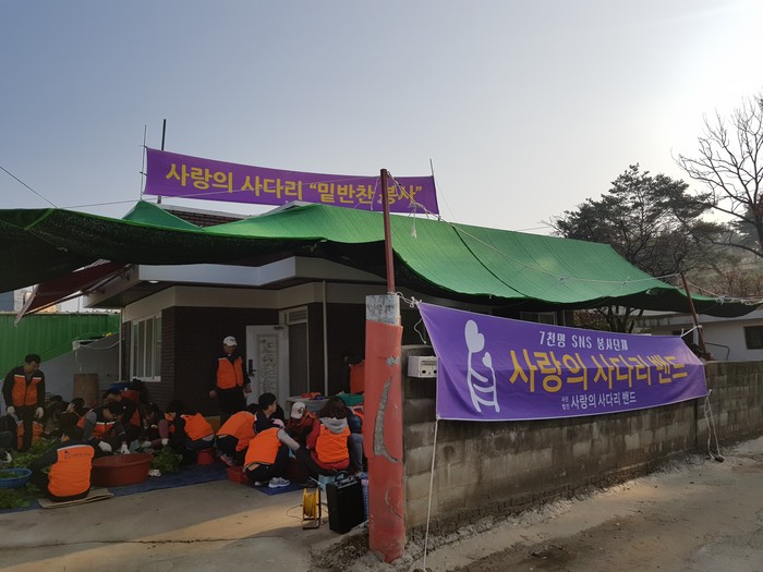 [세계타임즈 이장성 기자] 7천명 SNS 대전시 봉사단체 사랑의 사다리 밴드(리더 이정제)는 10일 오전 9시, 대덕구 상서동에 위치한 대전종합모터스(대표 김호현)에서 사랑의 밑반찬 봉사로 우리 사회의 따뜻한 사랑을 전달하였다.