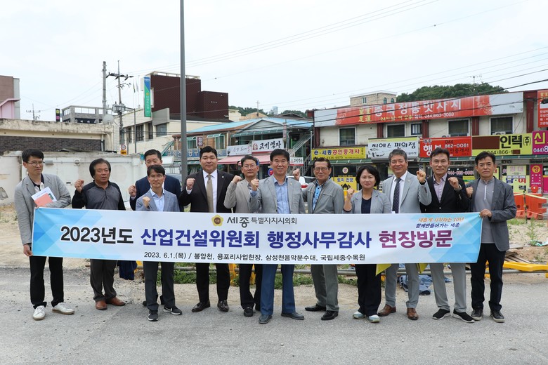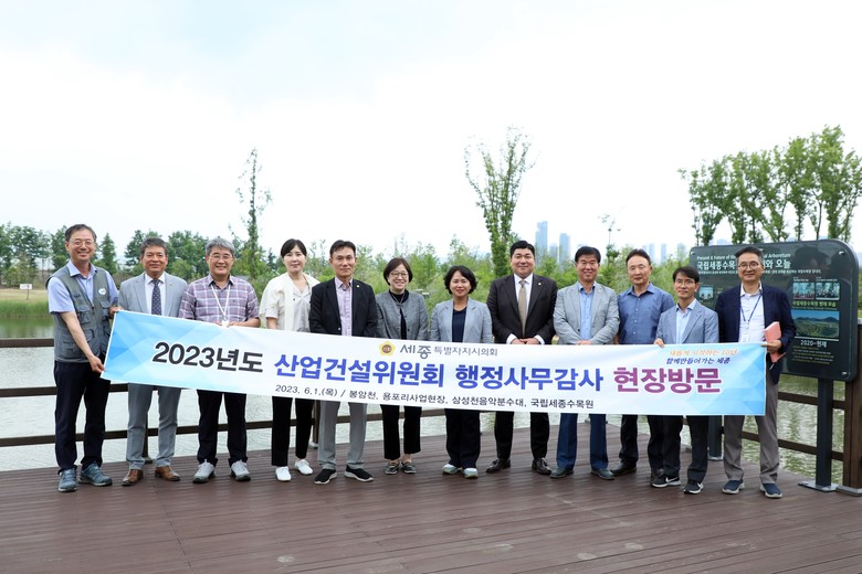 이날 현장 방문은 행정사무감사 전에 운영 현황 및 실태 점검을 확인하기 위한 자리다. 산업건설위원회는 봉암천과 용포리 전선 지중화 사업 및 보행환경 사업 현장, 삼성천 음악분수대, 국립세종수목원을 차례로 방문했다.