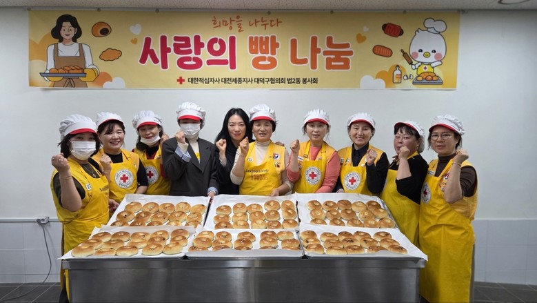 이날 봉사에는 법2동 적십자봉사회 회원 10여 명이 참여해 대한적십자사 대전세종지사 ‘제빵 나눔터’에서 빵 200개를 직접 구웠으며, 완성된 빵은 법동종합사회복지관을 통해 필요한 가정에 전달됐다.