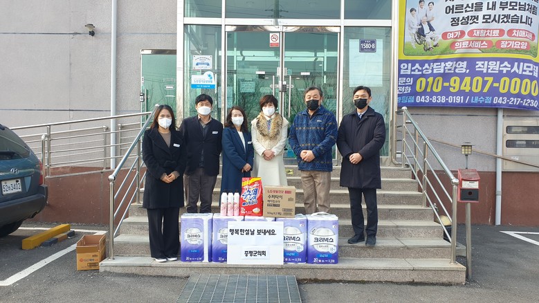 [세계타임즈=증평군 이현진 기자] 증평군의회(의장 이동령)는 18일 설 명절을 앞두고 보건복지타운 내 위치한 ‘증평노인전문요양원’과 증평읍 연탄리에 소재한 노인요양시설 ‘다정한마을’을 찾아 위문품을 전달하면서 시설관계자들의 애로사항을 청취하고 노고를 격려하는 등 따뜻한 명절을 위한 나눔의 정을 실천했다.