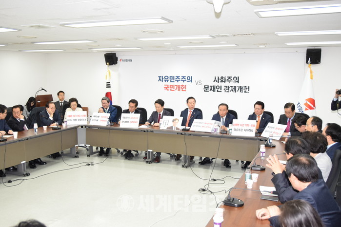 그리고 개헌과 관련해서도 4월 20일까지 국민투표법 개정을 해야 한다고 날짜를 못 박고 있다. 지금 개헌은 전혀 개헌내용이나 이런데 대해서는 협상의 어떤 자세를 전혀 갖추지 않고, 지금 개헌안이 합의되면 우리가 국민투표법 바로 처리해주겠다고, 반대하지 않는다고 누차에 거쳐서 밝혔음에도 4월 20일 못을 박아서 국민투표법 개정을 해야 된다고 주장하고 있다. 개헌이 목적인지 국민투표법 개정이 목적인지 도대체 이해가 안 되는 말씀을 하고 있다. 어째든 4월 국회가 정상화될 수 있도록 방송법 개정에 대한 진정성 있는 태도를 보여주고, 개헌과 관련해서 국민투표법은 언제든지 개헌안이 합의되면 우리당이 처리해드릴 테니 개헌협상과 관련해서 권력구조 문제를 포함한 우리당에서 주장한 4가지 패키지 협상안에 대해서 적극적으로 전향적으로 협상에 임해주실 것을 요구를 드리면서 이런 것들이 전제되어야 4월 국회가 정상화될 수 있다는 말씀을 드린다.