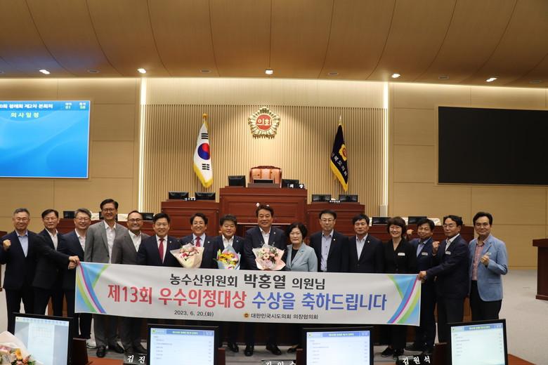 우수의정대상은 대한민국 시도의회의장협의회장이 수여하는 권위 있는 상으로 지역발전을 위한 헌신적인 노력과 뛰어난 의정활동으로 지역 주민들의 삶의 질 향상에 공로가 지대한 시도의회 의원을 대상으로 수여하는 상이다.