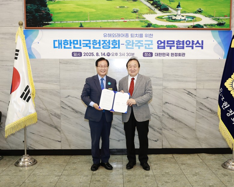 유희태 완주군수는 “이번 협약은 토속 어종 보호와 건강한 수중생태계 복원을 위한 중요한 발걸음”이라며 “앞으로도 유해 외래어종 퇴치와 자원화를 통해 환경보호와 농·어가 소득 향상에 기여하겠다”고 밝혔다.